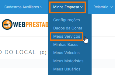 Para começar, acesse o WebPrestador pelo link: https://app.webprestador.com.br/autenticacao/login . Depois de fazer login, vá até o menu Minha Empresa > Meus Serviços.