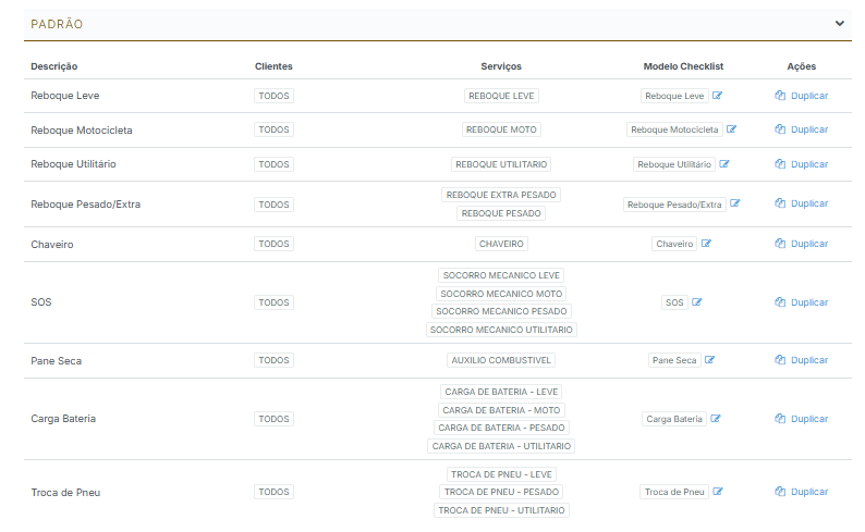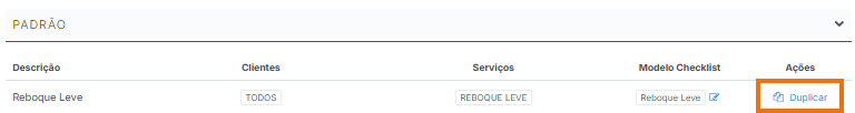 Essa é a forma mais rápida e prática. Basta localizar um checklist padrão e clicar em “Duplicar”.