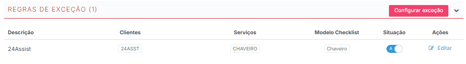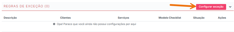As Regras de Exceção permitem definir situações em que um checklist não deve aparecer em determinados atendimentos. Isso é útil quando um cliente específico não utiliza determinado serviço.