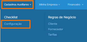 No sistema WebPrestador, acesse: Cadastros Auxiliares > Checklist > Configuração.